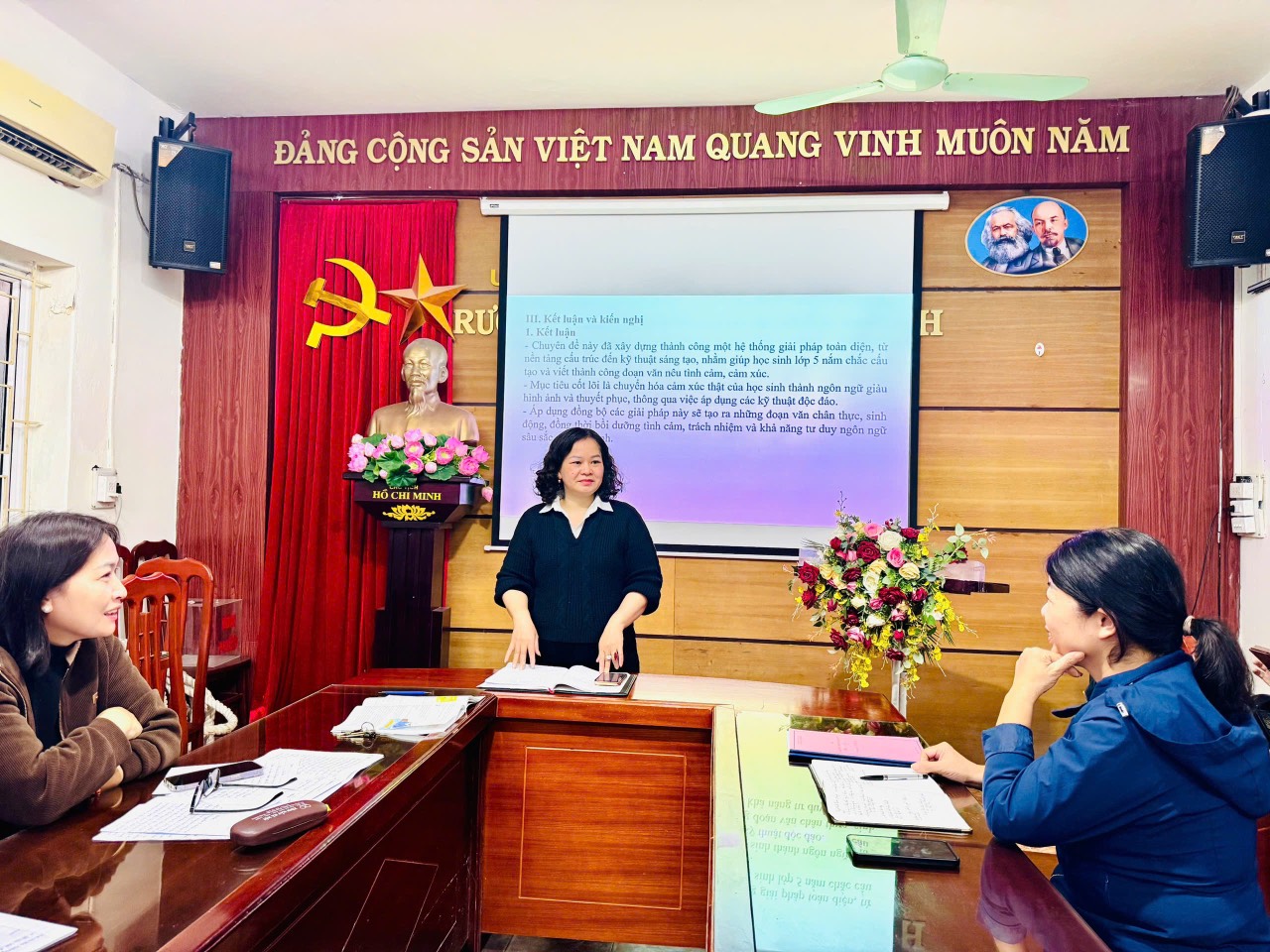 🌻Sau buổi trao đổi, giáo viên trong tổ đều thống nhất vận dụng linh hoạt các phương pháp dạy học theo hướng phát huy tính tích cực, chủ động và sáng tạo của học sinh; chú trọng rèn luyện khả năng diễn đạt cảm xúc bằng ngôn ngữ viết, góp phần nâng cao chất lượng dạy viết văn lớp 5.