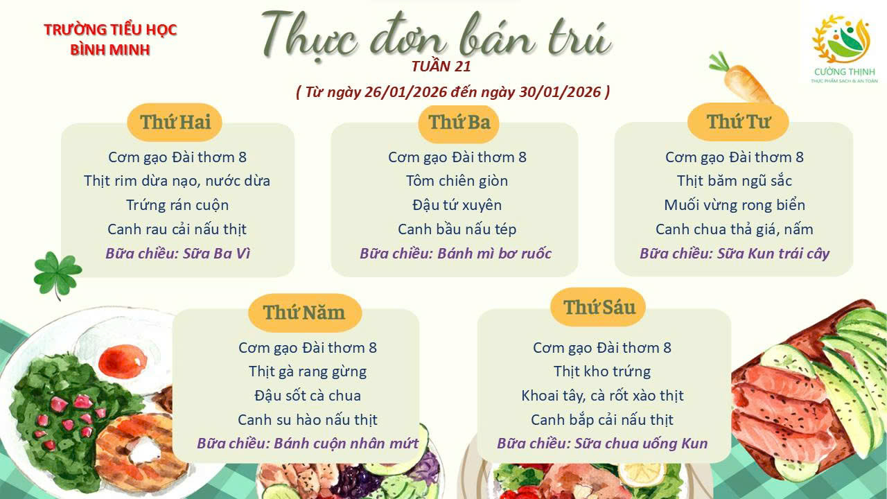 Thực đơn bán trú tuần 21 (từ ngày 26/01/2026 đến ngày 30/01/2026)
