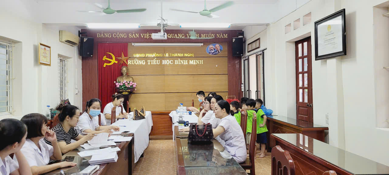 🌟 Nhằm nâng cao chất lượng chăm sóc sức khỏe học sinh trong năm học 2025–2026, trong hai ngày 7 và 8 tháng 10 năm 2025, Trường Tiểu học Bình Minh đã phối hợp với Trạm Y tế phường Lê Thanh Nghị tổ chức khám sức khỏe định kỳ cho toàn thể học sinh.